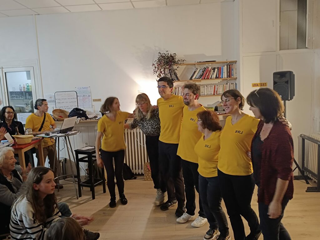 Pour celles et ceux qui aiment se challenger un peu, ou qui souhaitent découvrir si l’impro est une chose pour eux : vous pouvez venir improviser sur scène (si, si ! sur la scène, avec nous !) lors d’une Jam. Il s’agit d’une scène ouverte. Vous pouvez venir soit en tant que public (si vous ne vous sentez pas de jouer, on ne vous forcera pas) soit en tant que joueur et ce quel que soit votre expérience en improvisation (même si vous n’êtes jamais monté sur une scène de votre vie). Si vous souhaitez monter sur scène, vous serez appelé par le MC à un ou plusieurs moments du spectacle pour jouer avec d’autres comédiens, expérimentés ou non.